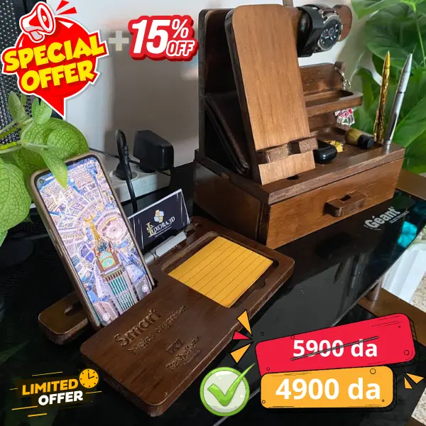 Rasbelle Dock™ – منظمك الخشبي لكل تفاصيلك اليومية